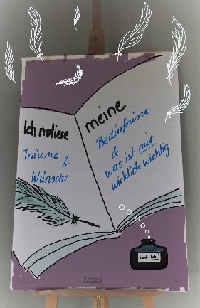 Notiere deine Träume, deine Wünsche und Bedürfnisse. Ebenso was dir wirklich wichtig ist. Nimm für jeden Punkt zwei Seiten, so hast du Platz, um diese Punkte zu überarbeiten.
